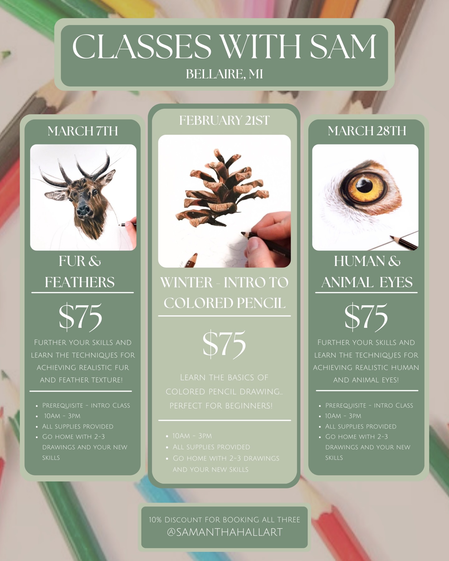 Featured February 21 @ 10:00 am - 3:00 pm Classes with Samantha Hall, Artist